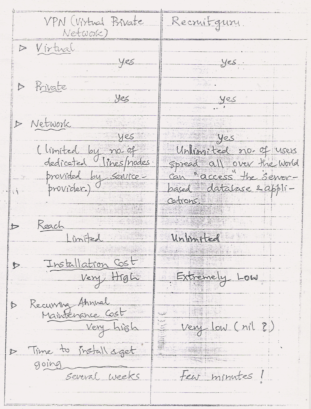 conduct all of her activities thru RecruitGuru then, Sanjeev has one more VERY